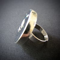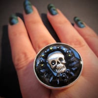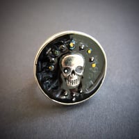 Midnight Rocks metallic blue and black ring featuring a little skullie.
