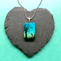 Tree at Twilight Resin Pendant in Green/Turquoise